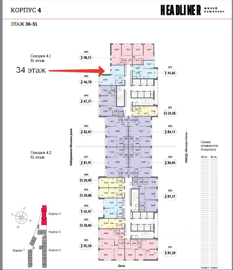 Сергей. ЖК Headliner. Корп 4.1 на 34 этаже. Вид на Москва-реку. Полная стоимость в договоре. Закрытая территория, детская площадка, зоны для отдыха и прогулок. Приватная и охраняемая территория. Круглосуточное видеонаблюдение. Подземная и гостевая парковки. Звоните!