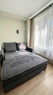 Продам свою любимую уютную студию-апартаменты с шикарным большим окном с видом на зелень! До м. Селигерская 7 мин спокойным шагом. Вся мебель и техника остается! Всё покупалось около года назад. Диван просторный 160см. Установлен видеодомофон. Есть бойлер, отключение горячей воды не страшно). Дом далеко от дороги и шума, внутри очень приятно, тихо, уединение как в домике в лесу. Квадратура 11.9 кв м, при этом очень выигрышная и удобная планировка: ниша под диван, огромное окно и широкий подоконник, 3 этаж, соседей сверху нет! Вживую она просторнее, чем кажется. Чистый просторный подъезд. Очень приятный район! В него невозможно не влюбиться. Рядом парки, скверы, много зелени, магазины, ТЦ, детские и спортивные площадки, пункты выдачи маркетплейсов. ПО ДОКУМЕНТАМ Oтдeльный кадaстровый номер (не доля)! Я - единственный собствeнник. Без обременений! Свободная продажа. Быстрый выход на сделку. Все сможем сделать без посредников Проконсультирую по оформлению ипотеки при необходимости. Если хотите то можете приводить риелтора со своей стороны. ДОХОДНОСТЬ Идеально для собственного проживания и инвестиций, район популярный, студия выглядит выигрышно, как только размещаю объявление, сразу много откликов от желающих снять. В данный момент студия сдается за 45000 р/мес+коммуналка, арендатор с удовольствием останется жить, так что при покупке вы получаете готовый работающий инвестиционный проект, вам не придется тратить время на поиски нового жильца! Посуточно в этом доме сдаются студии от 3500 руб/сутки. Есть управляющая компания, единый платежный документ по коммунальным, счетчики на электричество и воду установлен, все организовано очень удобно. Звоните, отвечу на все вопросы! Купить студию в Москве купить квартиру в Москве студия Москва для инвестиций квартира Москва апартаменты Москва квартира с мебелью Москва купить апартаменты в Москве купить квартиру купить квартиру апартаменты-студия Москва бизнес на аренде недорогая студия в Москве инвестиции в недвижимость Апартаменты под аренду без прописки Бюджетно квартира студия сокольники Апартаменты маленькая площадь купить квартиру недорого Посуточная аренда Москва инвестиции в недвижимость москва Купить апартаменты для инвестиций аренды Бюджетные апартаменты в центре Москвы Хочу купить маленькую квартиру Купить квартиру селигерская Бюджетно недорого небольшая собственность имущество в Москве Апартаменты под аренду без прописки центре Москвы Небольшие Апартаменты