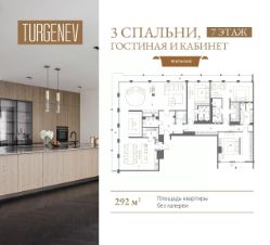 Одна из двух самых просторных квартир в доме: Пентхаус с 3 спальнями, 292 м2, 7 этаж Клубного дома TURGENEV.