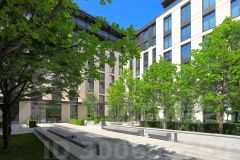 Внутренний двор с садом Клубного дома TURGENEV - оазис с зелеными газонами, мощеными тропинками, фонтана