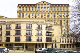 В отделке фасада здания использовался травертин, а центральное лобби и холлы отделаны природным мрамором, премиальным породами дерева, стильной латунью.