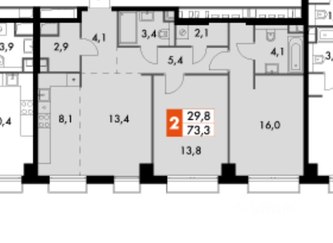 Продаётся 2-к квартира общей площадью 73,3 кв.м. на 6-м этаже.