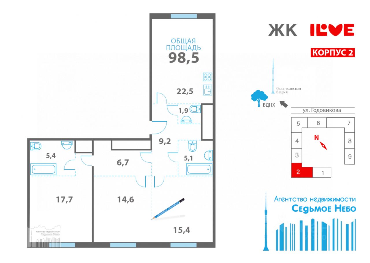 Идеальная транспортная доступность: метро Алексеевская 10 минут пешком, метро Марьина Роща 7 минут на транспорте. Развитая инфраструктура, школы, поликлиники, спорт клубы, магазины, скверы.