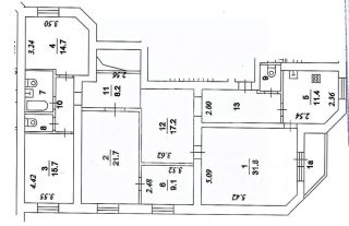 Квартира состоит из большой гостиной, 3-х спален, кабинета, большой гардеробной, 2- х туалетных комнат, одна из которых с душевой кабиной, другая с ванной, (полы с подогревом), кухни, большой лоджии из гостиной. В комнатах и прихожих на полу - паркетная доска. Установлены деревянные стеклопакеты. Ремонт квартиры выполнен из дорогостоящих материалов от ведущих производителей.