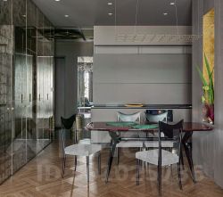 ОПТИМАЛЬНАЯ ПЛАНИРОВКА. Прихожая с зеркальным шкафом, в котором спрятался гостевой санузел и кладовка. Просторная, воздушная гостиная с кухней Valcucine и столовой без стен. Комнаты разделяются перегородкой-коконом, обнимающей кровать. Спальня с системой хранения и раздвижной перегородкой, за которой расположилась ванная комната с зеркальными шкафчиками и латунными деталями.
