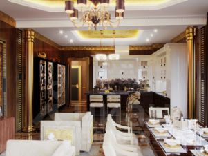 1-й этаж : СТУДИО - кухня + гостиная , гардеробная, санузел (построчная и гостевой санузел), 2 спальни (детские) с гардеробной и полноценным санузлом (ванна, душевая кабина), есть банковский сейф (высота 1,5м). Лифтовая шахта. Разводка вентиляционная, электрика, сантехника - проведены на первом этаже.