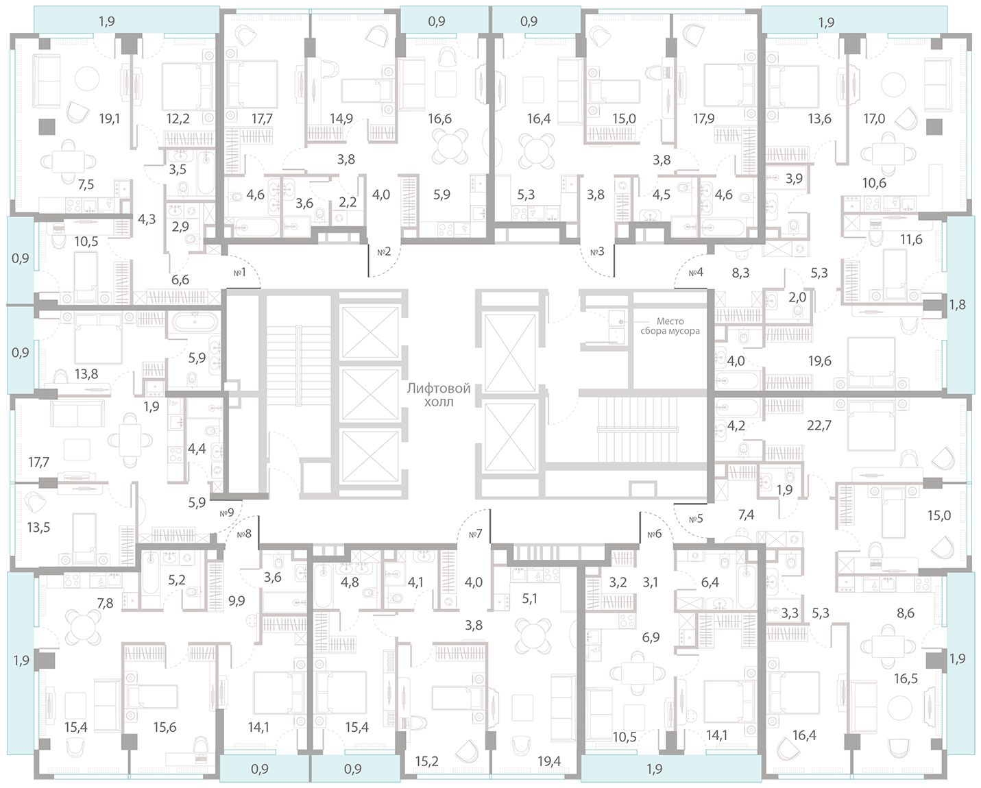 В закрытом внутреннем дворе уникальная по насыщенности клубная инфраструктура - 5 Towers Club только для жителей: