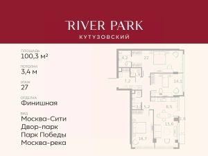 Продается 3-к квартира площадью 100.3 кв.м. на 27-м этаже в жилом комплексе премиум-класса River Park Кутузовский в Башне Topaz Tower