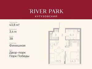 Продается 1-к квартира площадью 43.8 кв.м. на 38-м этаже в жилом комплексе премиум-класса River Park Кутузовский в Башне Topaz Tower