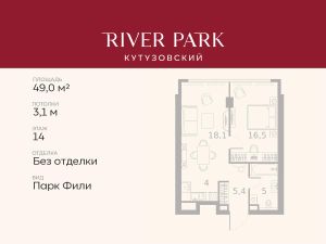 Продается 1-к квартира площадью 49.0 кв.м. на 14-м этаже в жилом комплексе премиум-класса River Park Кутузовский в Башне Amber Tower