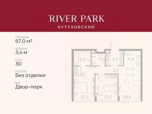 Продается 2-к квартира площадью 67.0 кв.м. на 30-м этаже в жилом комплексе премиум-класса River Park Кутузовский в Башне Amber Tower