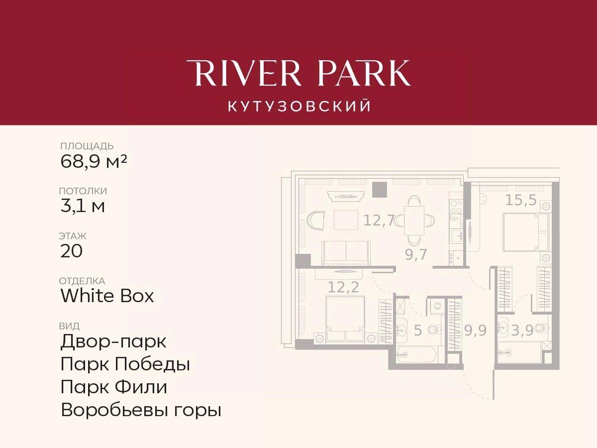 Продается 2-к квартира площадью 68.9 кв.м. на 20-м этаже в жилом комплексе премиум-класса River Park Кутузовский в Башне Emerald Tower