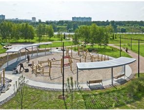 Вид из окна квартиры открывается на южную сторону, на собственный благоустроенный двор-парк, обеспечивая тишину, вдали от шумной дороги.