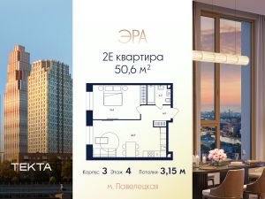2-комн. квартира в ЖК "ЭРА" на 4 этаже в 33 этажном здании Корпус 3. Общая площадь: 50.6 кв.м., жилая: 33.50 кв.м. Высота потолков 3.15 м.