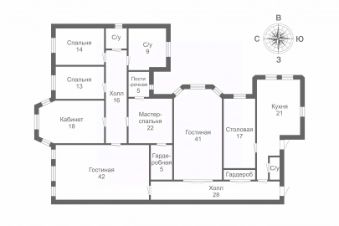 -2 залы-гостиные - 41 и 42 кв. м.;