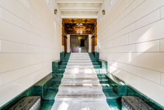 Парадная дома со стойкой консьержа - после полной реновации, декорирована расписными кессонированными потолками, лепниной, мраморными колоннами. Современные бесшумные скоростные лифты Schindler со стилизованной отделкой из шпона дуба. Круглосуточная охрана и видеонаблюдение. Предусмотрено машиноместо для жителей дома на закрытой парковке во дворе.