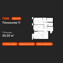Продаётся 2-комн. квартира площадью 65,5 кв.м на 21 этаже 24 этажного дома (Корпус 1.4, Секция 4) проекта ПИК Плеханова 11. Светлый просторный подъезд на уровне земли, функциональная планировка, большие окна, c отделкой.