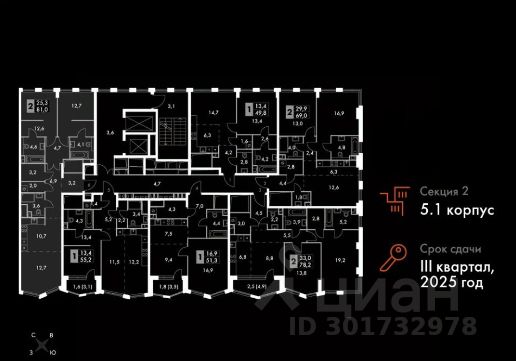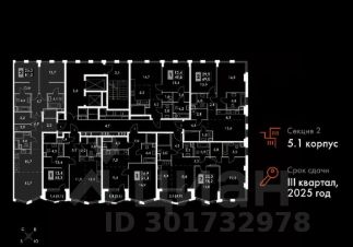 Расположение квартиры: Корпус 5.1, Секция 2, Подъезд 1, Этаж 22