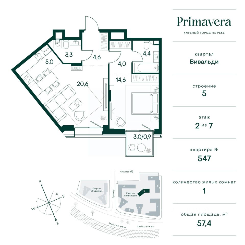 Клубный город на реке Primavera — это современный жилой комплекс премиум-класса, расположенный на первой береговой линии Москвы-реки в экологически чистом районе Покровское-Стрешнево. Под панорамными окнами квартир находится собственный экопарк с продуманной сетью прогулочных дорожек и современными детскими и спортивными площадками. За парком расположена набережная с собственным пляжем и зонами для отдыха. Клубный город на реке Primavera предлагает широкий выбор планировок для различных жизненных сценариев: от просторных однокомнатных квартир до пентхаусов и жилых помещений с террасами и патио. Выберите из 120 вариантов эргономичных планировок стандартного и евроформата. Из каждой квартиры открываются красивые виды на реку с углом обзора в 270 градусов. Дизайнерские лобби предлагают панорамный обзор на благоустроенный двор. Высокие потолки в 6 метров и качественная отделка создают атмосферу, схожую с пятизвездочными отелями. В Primavera есть всё необходимое для комфортной жизни в мегаполисе: • Образование для детей в шаговой доступности: 4 школы, 8 детских садов и развивающие центры с кружками и секциями. • Удобства на расстоянии приятной прогулки: супермаркеты, кафе, рестораны с верандами, салоны красоты, аптеки и многофункциональный центр для шоппинга и развлечений. • Умный дом: автоматизированное бесконтактное управление основными системами доступа и безопасности через мобильное приложение. Клубный город на реке Primavera выгодно сочетает комфорт городской жизни с близостью к природе. Живите в месте, где все создано для вашего удобства!