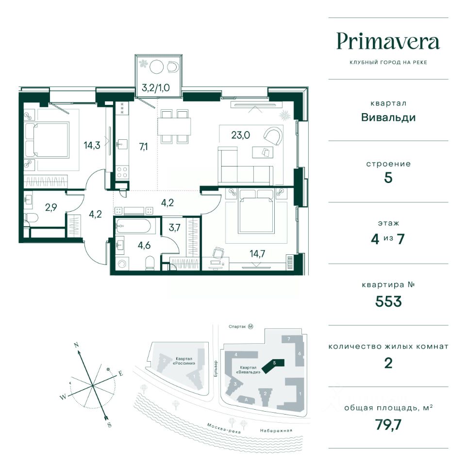 Клубный город на реке Primavera — это респектабельный проект премиум-класса на первой береговой линии Москвы-реки в экологически безупречном районе — Покровское-Стрешнево. Под панорамными окнами квартир расположился собственный экопарк, площадью 12 гектаров с сетью прогулочных дорожек, оборудованный детскими и спортивными площадками, а за ним набережная с собственным пляжем и зонами отдыха. Клубный город на реке Primavera предлагает впечатляющий выбор планировок для любого жизненного сценария: от просторных однокомнатных квартир до пентхаусов и квартир с видовыми террасами или патио. Выбирайте из 120 вариантов эргономичных планировок стандартного и евроформата. В проекте доступны квартиры площадью от 40 до 209 м², в каждой из которых открываются непревзойденные виды на реку, а угол обзора составляет 270 градусов. Из дизайнерских лобби открывается панорамный обзор на зеленый благоустроенный двор. Статусное мебелирование, потолки высотой 6 м и комфортная лаунж-зона отсылают к стилистике высококлассных пятизвездочных отелей. В Primavera есть все, что может предложить мегаполис, здесь все сосредоточено вокруг вас и настроено на ваши желания: - Всестороннее детское развитие в паре шагов от дома: 4 школы, 8 детских садов, развивающие центры с кружками и секциями. - Комфорт мегаполиса на расстоянии приятной прогулки: супермаркеты, кафе, рестораны с верандами на крыше, салоны красоты, аптеки, компании сферы услуг, многофункциональный центр для шоппинга и развлечений. - Умный дом: автоматизированное бесконтактное управление основными системами доступа, инфраструктуры и безопасности через мобильное приложение и специальные метки. Клубный город на реке Primavera выгодно отличается близостью к природе, совмещенной с насыщенной инфраструктурой.