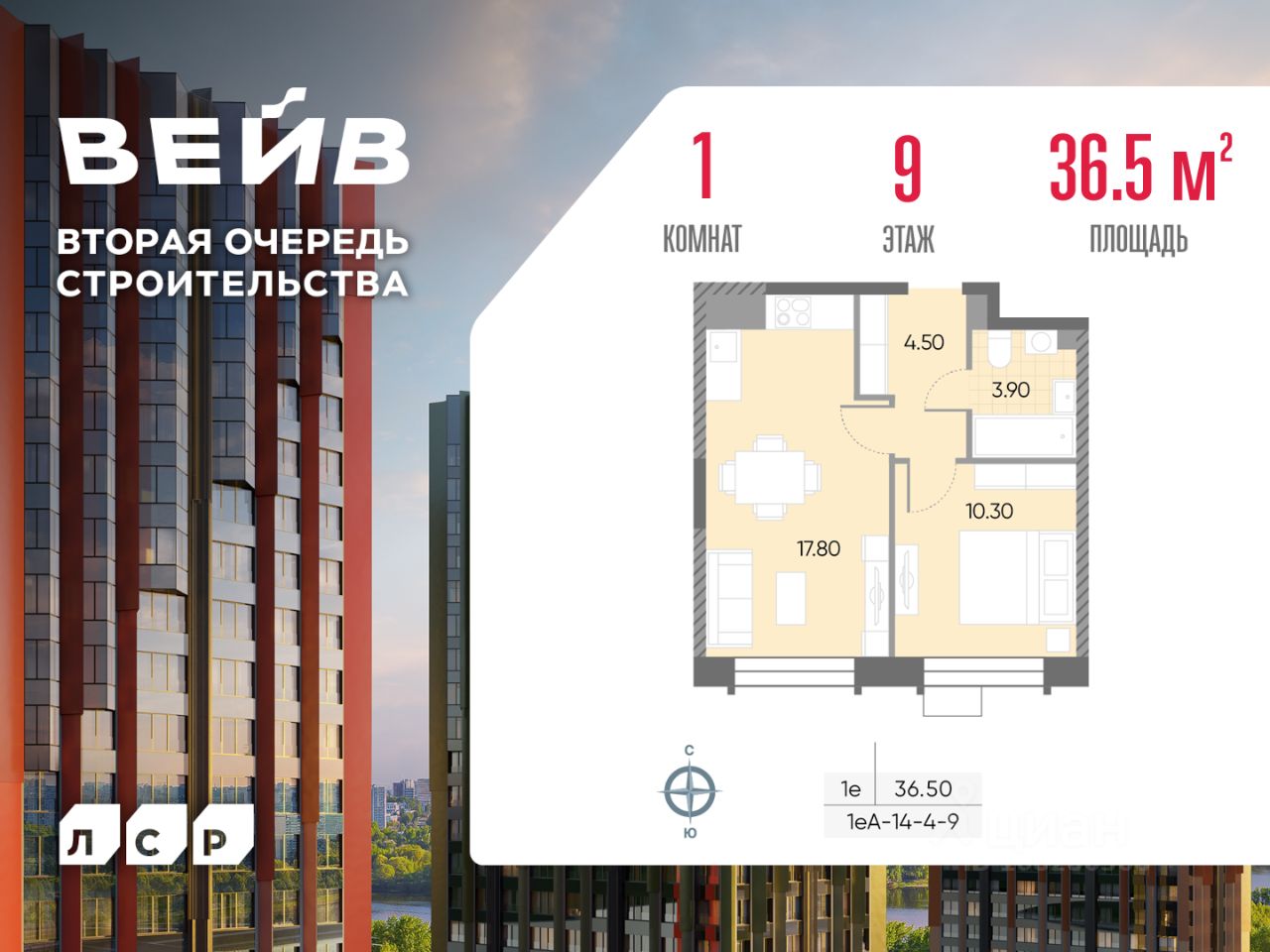 Продается 1-комнатная квартира общей площадью 36.5 кв. метров на 9 этаже жилого комплекса ВЕЙВ. Комплекс располагается на юге Москвы в районе Москворечье-Сабурово. В пешей доступности расположены станция МЦД "Москворечье" и станция метро "Борисово". Для автомобилистов есть удобное сообщение с Каширским шоссе.