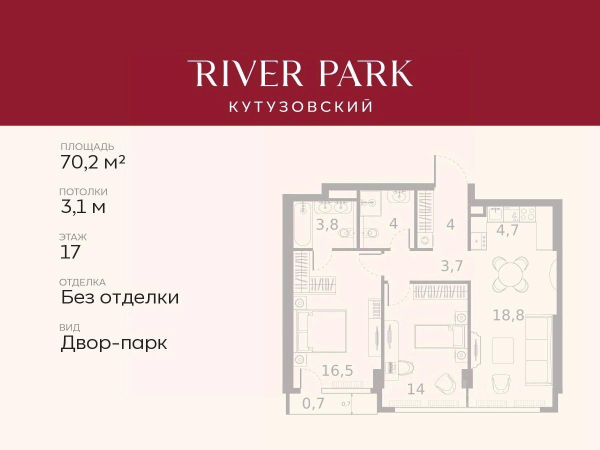 Продается 2-к квартира площадью 70.2 кв.м. на 17-м этаже в жилом комплексе премиум-класса River Park Кутузовский в Башне Amber Tower