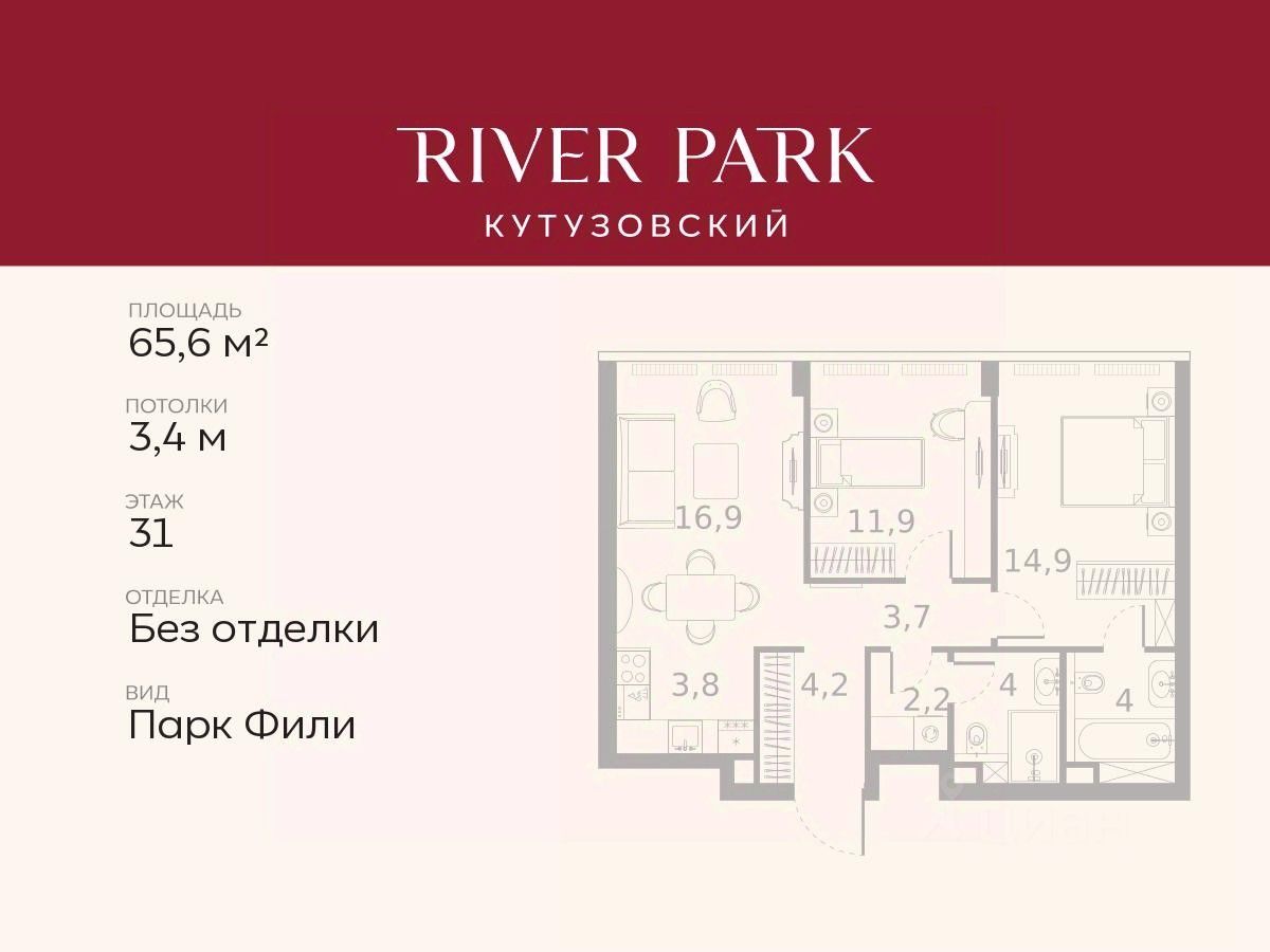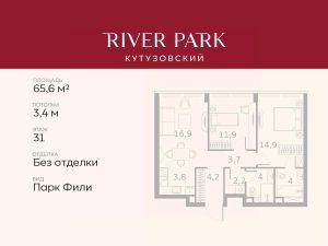Продается 2-к квартира площадью 65.6 кв.м. на 31-м этаже в жилом комплексе премиум-класса River Park Кутузовский в Башне Amber Tower