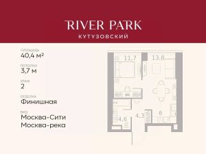 Продается 1-к квартира площадью 40.4 кв.м. на 2-м этаже в жилом комплексе премиум-класса River Park Кутузовский в Башне Topaz Tower