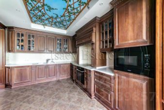 дуба изготовленные на заказ, холл украшен авторской фреской, шторы во всех спальнях). Комнаты изолированные (Кухня 13 м2, столовая 22,9 м2, гостиная с кинотеатром 29,3