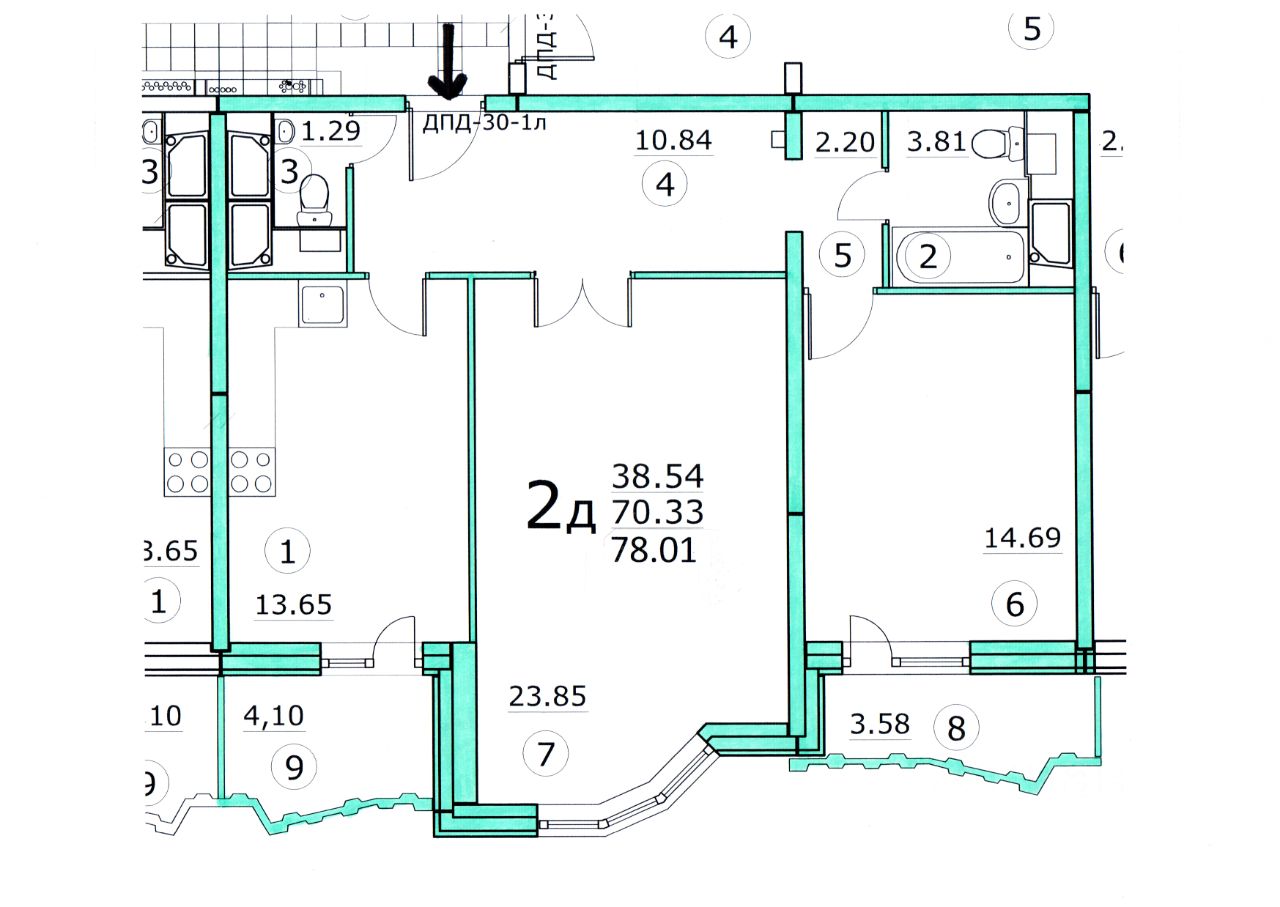 Перепланировок и переноса коммуникаций не было. Середина дома, середина секции, средний этаж. Квартира НЕ примыкает к торцам и деформационным зазорам между секциями! Очень тёплая! Общая площадь по кадастровому учёту - 70,3 Фактическая площадь по плану застройщика и личным обмерам - 78,01!