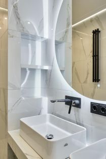 бизнес-класс: просторные входные группы, подземный паркинг. В отделке общественных пространств использованы природные материалы, натуральное дерево и камень.