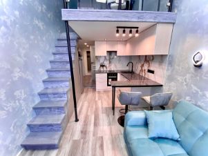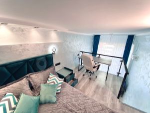 Студия с продуманным дизайном: просторные окна размером 2,85 на 2,6 метра обеспечивают обилие естественного света. Высота потолков 4,3 метра!. Жилая площадь составляет 18,6 м² по полу и в ЕГРН, а также 13,54 м² антресоли.