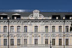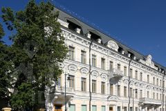 "Дом с Атлантами" четырехэтажный особняк в стиле классицизм, построенный в 1882 году по проекту архитектора В. Н. Карнеева. Главный фасад украшают фигуры атлантов, поддерживающих балкон над центральным входом, львиные маски под карнизом и жезлы Меркурия на замковых камнях окон первого этажа. Балконы оформлены литыми ограждениями из чугуна. В связи с тем, что дом относится к объектам культурного наследия, внешний облик здания сохранен восстановлена кирпичная кладка, историческая лепнина и цвет фасада. Однако внутреннее оснащение полностью обновлено проведена замена перекрытий, подведен новый железобетонный фундамент, дом снабжен современной инженерией. Проведена реставрация исторических интерьеров мест общего пользования по проекту архитектурного бюро "Цимайло Ляшенко и Партнеры".