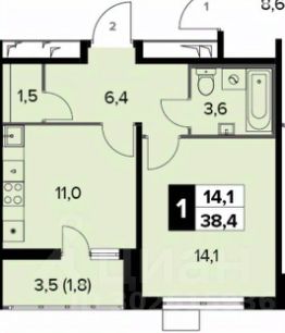 Квартира с большой кухней гостинной-11 м.кв. с выходом на застекленную лоджию, большая спальня-14,1 м.кв., просторная прихожая, совмещенный санузел + гардеробная.