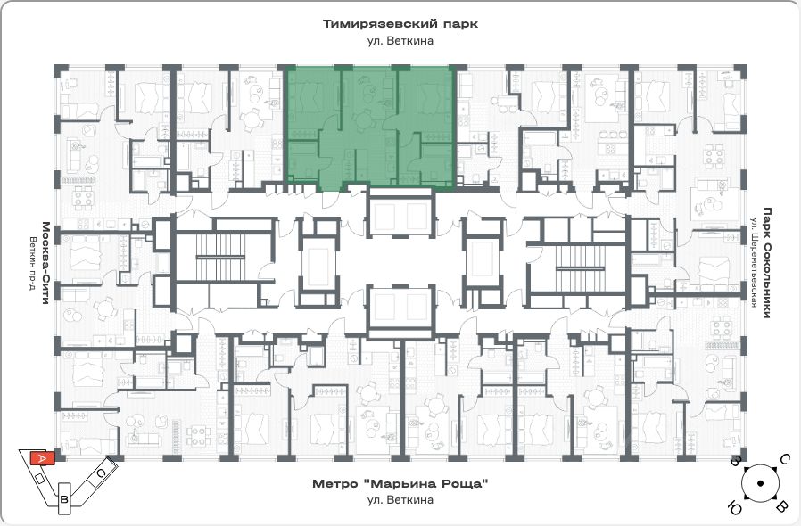 • Высота потолков - 3.12 м, панорамные окна наполняют пространство естественным светом, открывая вид на Тимирязевский парк;