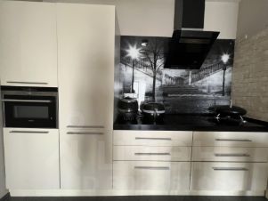 В интерьере квартиры использованы только качественные,современные материалы отделки.Встроенная бытовая техника Siemens и Bosh,сплит система в спальне и кухне-гостиной.Ванная Villeroy Boch,смесители Hansgrohe.Продуманная система хранения в прихожей,спальне и гостиной.Вся мебель выполнена на заказ,авторские картины и роспись на стене,витражный плафон в прихожей и шкаф в спальне с витражными вставками так же изготовлены на заказ.