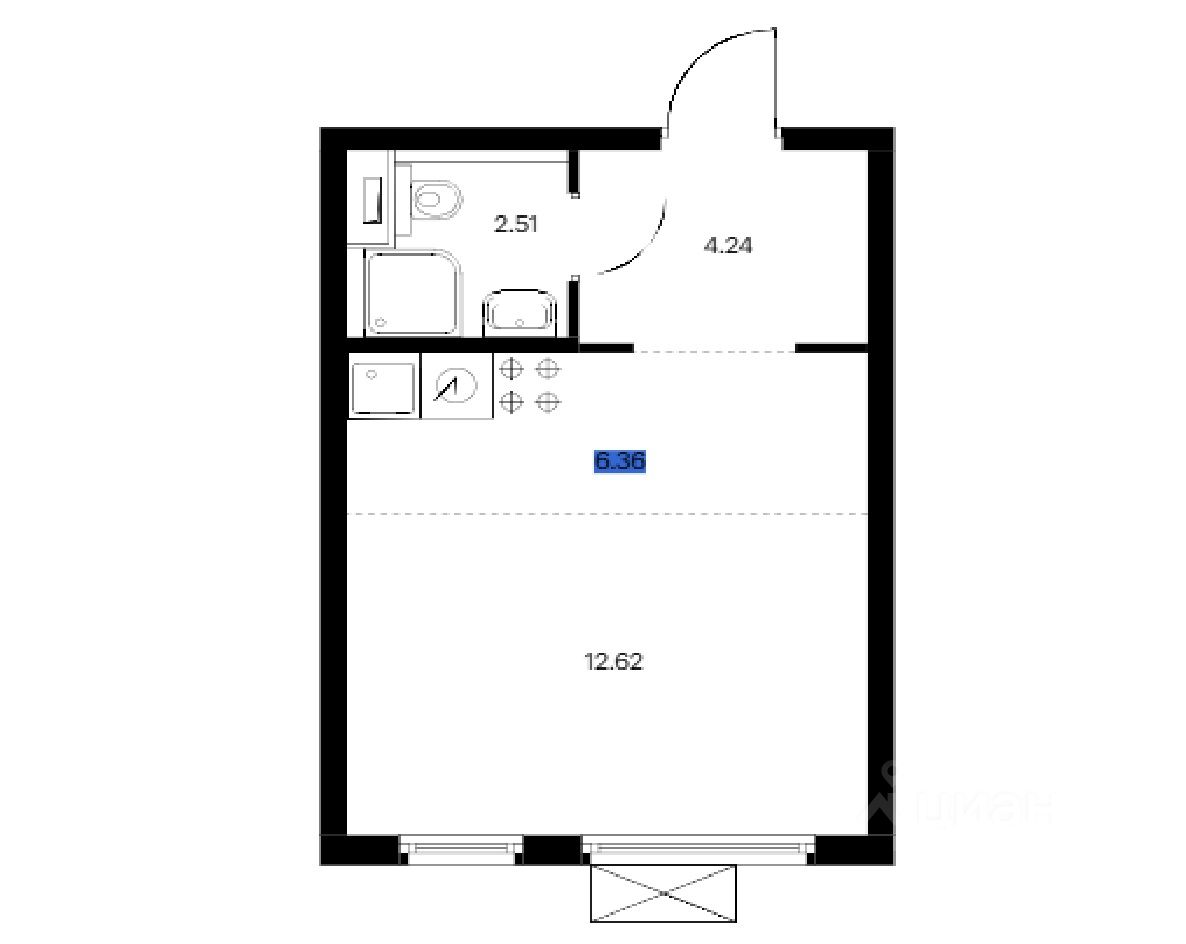 Студия, Окна,- во двор. Корпус 1.3.; Секция 1. Переуступка ДДУ.