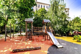 Оборудованная детская площадка.