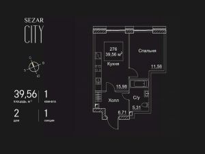 Продается 1-комнатная квартира в ЖК SEZAR CITY на 27 этаже. Общая площадь квартиры составляет 39,56 кв.м. Квартира без отделки. Срок сдачи - 2027 год.