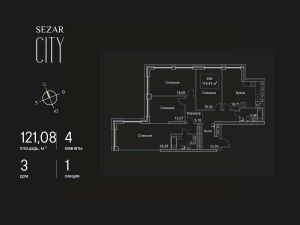 Продается 4-комнатная квартира в ЖК SEZAR CITY на 47 этаже. Общая площадь квартиры составляет 121,08 кв.м. Квартира без отделки. Срок сдачи - 2027 год.