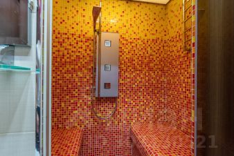 Качественный ремонт из дорогих материалов выполнен по дизайнерскому проекту и продуман до мелочей: просторная кухня-гостиная с выходом на лоджию, гостевая комната-кабинет, мастер-спальня со своим санузлом и гардеробной, общая гардеробная, гостевой санузел с сауной.