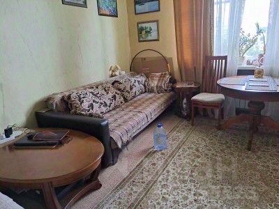 Большая кухня 9.8 м2 с балконом. Санузел раздельный. Общие помещения в квартире старые, но в приемлемом состоянии, чисто, порядок, без запахов, тараканов и пр. В квартире 5 комнат, все с отдельными лицевыми счетами. Соседи прекрасные, живут сами. Можно также жить самому, можно сдавать.