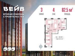 Продается 3-комнатная квартира общей площадью 82.5 кв. метров на 4 этаже жилого комплекса ВЕЙВ. Комплекс располагается на юге Москвы в районе Москворечье-Сабурово. В пешей доступности расположены станция МЦД "Москворечье" и станция метро "Борисово". Для автомобилистов есть удобное сообщение с Каширским шоссе.