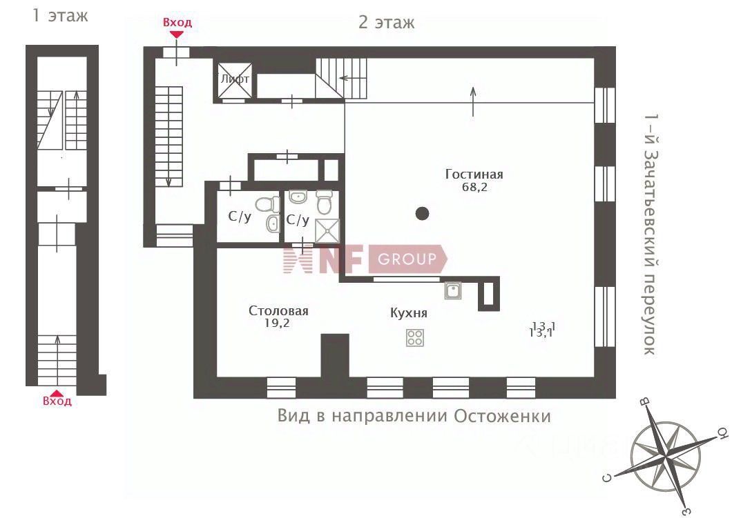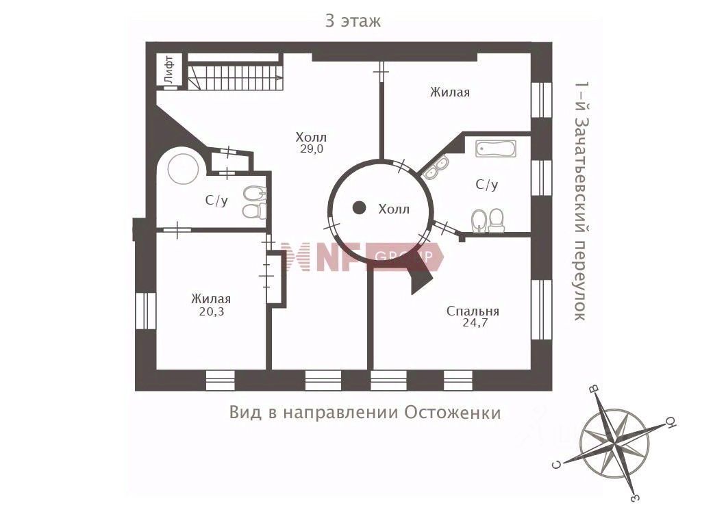 Лот: 53879. Эксклюзив NF GROUP. В продаже двухуровневая квартира в историческом особняке усадьбы Савеловых в Зачатьевском переулке на Остоженке.