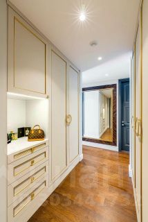 Квартира полностью укомплектована дорогой и качественной мебелью, изготовленной по индивидуальному дизайну из мдф в эмали soft touch и мдф в шпоне: шкафы, гардеробные, консоли, детские комоды, стеллаж детский, изголовье кровати, прихожая, постирочная. Большой удобный диван с приятной тканью, супер комфортный матрас в спальне премиум-класса толщиной 45см, немецкая кухонная техника.