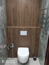 В ванной комнате немецкая сантехника, установлен проточный водонагреватель Электролюкс. Столешница из искуственного камня, стиральная машина Wessgauff.