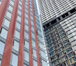 Eniteo - это ЖК бизнес-класса, состоящий из двух монолитных башен высотой 42 этажа с панорамным остеклением. На 39 этаже располагаются прогулочные террасы с захватывающими видами на город. ЖК имеет огороженную территорию, детскую площадку, подземный паркинг.