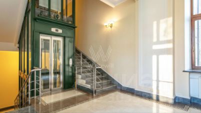 Двухуровневый пентхаус общей площадью 351 м² в элитном клубном доме "Власьевская Слобода". Интерьер оформлен в современном стиле в светлых тонах. Благодаря большому количеству окон и потолкам высотой 3,8 метра пространство наполнено естественным светом и воздухом. Установлены трехкамерные стеклопакеты, предусмотрена возможность установки камина. Планировка позволяет организовать просторную гостиную, кухню, шесть спален, три ванные комнаты, прихожую. Окна ориентированы на две стороны, открываются виды в благоустроенный двор и Большой Власьевский переулок.