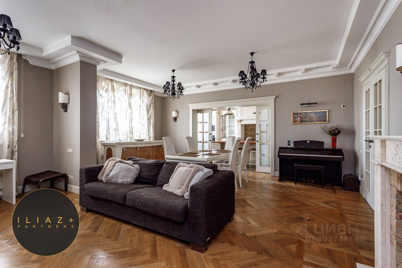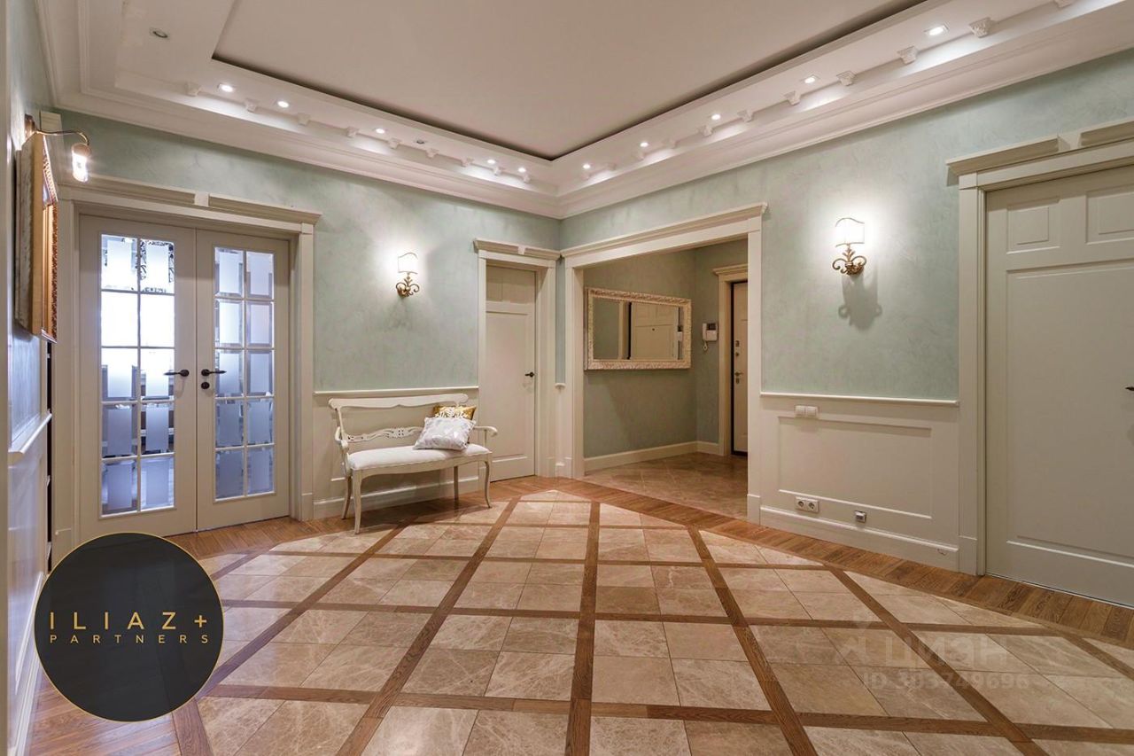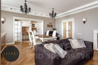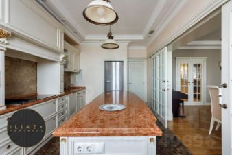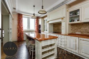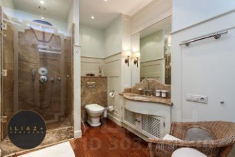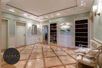 Выполнен дизайнерский ремонт с использованием дорогостоящих материалов: на полу везде - дубовый паркет; на кухне - столешница из мрамора, на полу - плитка Emperador; в одном из санузлов на полу - тиковое дерево, душевая кабина из мрамора.