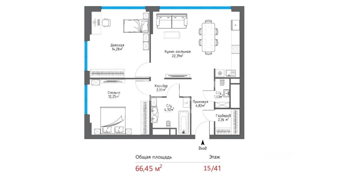 Предлагаем просторную 2-комнатную квартиру, общей площадью 65,45 м², на 15 этаже 41-этажного высотного дома в ЖК Headliner в престижном Пресненском районе (ЦАО), в 5 минутах от Москва-Сити.